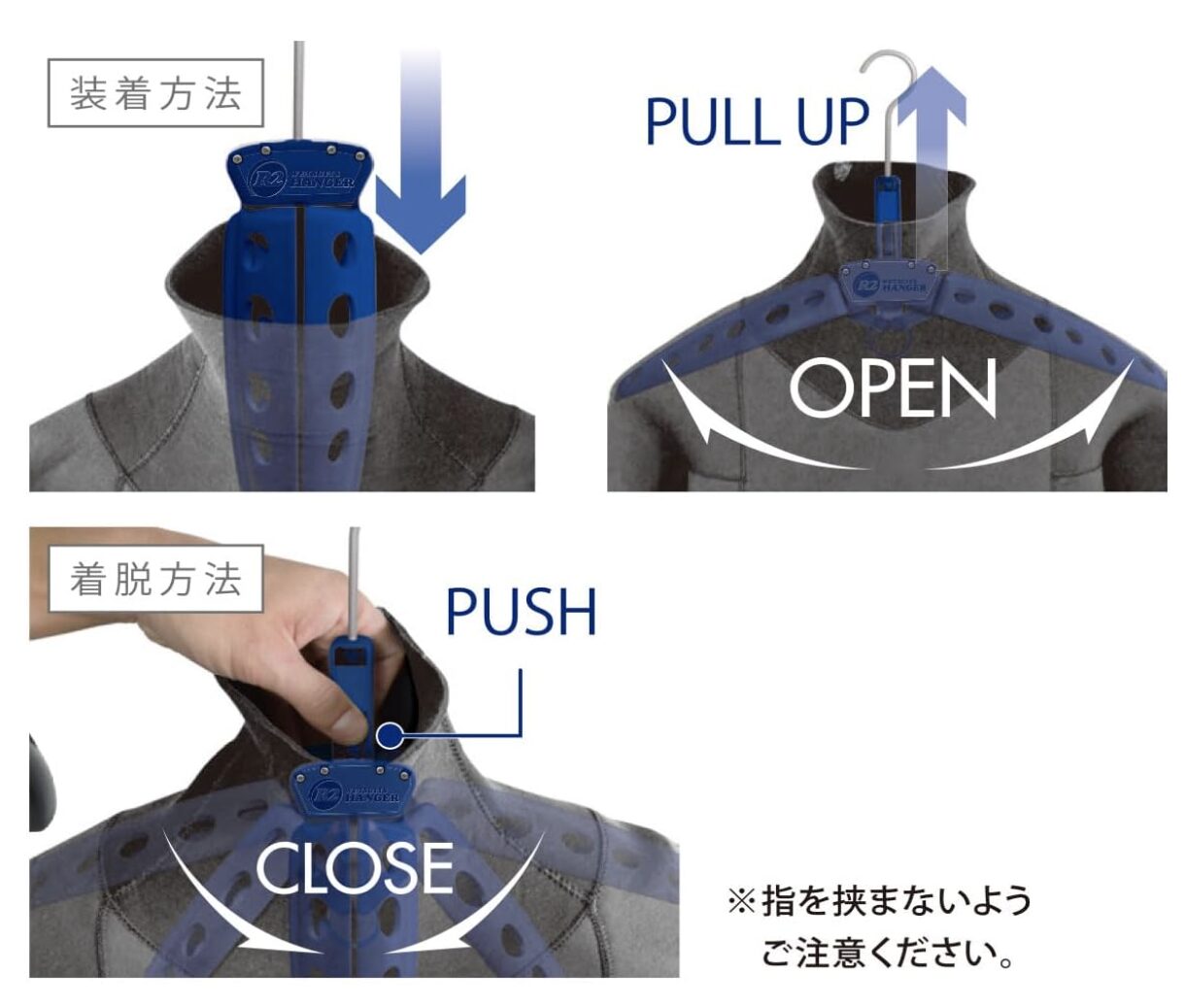 ウェットスーツの首を伸ばさずに取り外しができます。